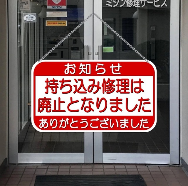 _/_/_/_/_/_/_/_/_/_/_/_/_/_/_/ 【 持 ち 込 み 修 理 廃 止 の お 知 ら せ 】 持ち込み修理のお客様が年々減少のためと 出張修理のご依頼が大変多いために、 持ち込み修理の受付は廃止となりました。 長年にわたり誠にありがとうございました。 現在は事務所へのミシンの持ち込み修理は、 対応できませんので何卒ご了承ください。 ミシン修理は出張修理で対応いたしますので、 今後ともよろしくお願いいたします。 _/_/_/_/_/_/_/_/_/_/_/_/_/_/_/ ┏★☆★☆━━━━━━━━━━━━━━━┓ 修 理 の お 申 込 み は お 電 話 で 承 り ま す ┗━━━━━━━━━━━━━━━☆★☆★┛ あなたのミシンの修理屋さん 太 田 ミ シ ン 修 理 サ ー ビ ス 群 馬 県 太 田 市 尾 島 町 1-1 【 ミ シ ン 修 理 の お 申 し 込 み は 】 ☎ 0 1 2 0 - 4 1 - 3 4 8 0 ------------------------------------------ 受付時間 / 10時00分 ~ 16時00分 休業日 / 年中無休 ( 月曜日臨時休業あり ) _/_/_/_/_/_/_/_/_/_/_/_/_/_/_/ .